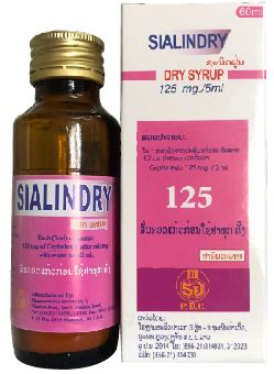 of mucous. ຊື່ການຄ້າ/Product Nam: SIALINDRY ສ່ວນປະກອບ/ Composition Each 100ml contains: Cephalexin 125mg ຂະໜາດ Size: 60ml ການບັນຈຸ / Packaging: 6fl x 14 packs/carton ຄຸນປະໂຫຍດ/ Indication -