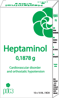 ຊື່ການຄ້າ/ Product Name: HEPTAMINOL ສ່ວນປະກອບ/ Composition Each 100mg contains: Heptaminol hydrochloride 0.1878g ຂະໜາດ Size: 0.1878g ການບັນຈຸ / Packaging: 10 tabs x 10 BL x 171 box/carton