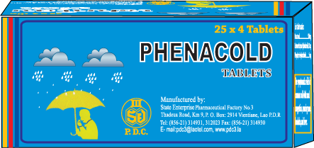 - For symptomatic relief of common cold with nasal congestion, running nose, headache and fever ຊື່ການຄ້າ/ Product Name: PHENACOLD ສ່ວນປະກອບ/ Composition Each 100mg contains: Paracetamol 500mg Dextromethorphan Hydrobromide 10mg Phenylephrine Hydrochloride 5mg ຂະໜາດ Size: 500mg ການບັນຈຸ / Packaging: 4 tabs x 25 BL x 68 box/carton