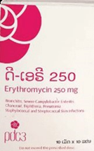 ຊື່ການຄ້າ/ Product Name: DI-ERY ສ່ວນປະກອບ/ Composition Each 100mg contains: Erythromycin 250mg ຂະໜາດ Size: 250mg ການບັນຈຸ / Packaging: 10 tabs x 10 BL x 192 box/carton