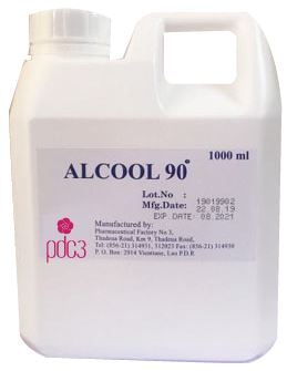 germs and virus ຊື່ການຄ້າ/ Product Name: ALCOOL 90 ສ່ວນປະກອບ/ Composition Each 100ml contains: Alcohol 90% ຂະໜາດSize: 450ml/ 1000ml/20L ການບັນຈຸ / Packaging: 25fl/carton 10fl/carton 20L/gallonຄຸນປະໂຫຍດ Indication