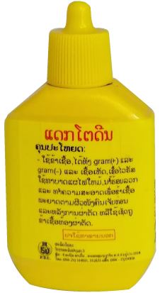 ![]() ![]() ![]() | ຊື່ການຄ້າ/ Product Name: DERTODINE ສ່ວນປະກອບ/ Composition Each 100ml contains: Povidone Iodine 10g ຂະໜາດSize: 30ml ການບັນຈຸ / Packaging: 12fl x 21 dozen/cartonຄຸນປະໂຫຍດ Indication - ໃຊ້ຂ້າເຊື້ອໄດ້ທັງ gram(+) ແລະ gram (-) , ເຊື້ອເຫັດ, ເຊື້ອໄວຣັສ, ເຊື້ອລາ - ໃຊ້ທາບາດແຜ ແຜສົດ, ແຜໄຟໄໝ້, ນໍ້າຮ້ອນລວກ, ແຜເນື່ອງຈາກການ ຖືກແສງເລເຊີ້, ໃຊ້ທໍາຄວາມສະອາດເພື່ອຂ້າເຊື້ອພະຍາດຕາມຜິວໜັງ ຄົນເຈັບກ່ອນ ແລະ ຫຼັງການຜ່າຕັດ ຫຼື ໃຊ້ເຊັດຖູຂ້າເຊື້ອ - Kill both gram (+) and gram (-) bacteria, fungi, viruses, protozoa and yeasts. - Effective in wound irrigation disinfection of wound, burn, laceration and abrasion for preoperative and postoperative scrubbing and washing of hospital operating-room, personal, preoperative skin preparation of patients.