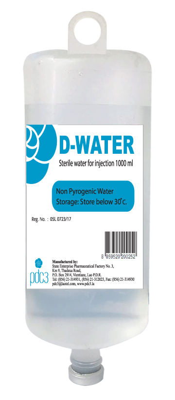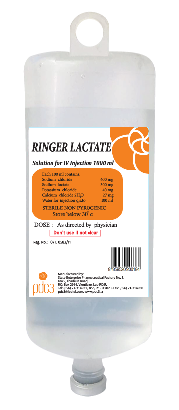 ຊື່ການຄ້າ/Product Nam: RINGER LACTATE ສ່ວນປະກອບ/ Composition Each 100ml contains: Sodium chloride 600mg Sodium lactate 300mg Potassium chloride 40mg Calcium chloride 2H2O 27mg Water for injection q.s to 100ml ຂະໜາດ Size: 500ml/ 1000ml ການບັນຈຸ / Packaging: 20 set /carton / 10 set/carton ຄຸນປະໂຫຍດ Indication - ໃຊ້ທົດແທນພະລັງງານ ແລະ ເກືອແຮ່ກ່ອນ ແລະ ຫຼັງການຜ່າຕັດ - ໃຊ້ສຳລັບຄົນເຈັບທີ່ຂາດນ້ຳ ແລະ ທາດນ້ຳຕານໃນຮ່າງກາຍ - Used for energy and mineral salts replacement before and after surgery - Used for patients who are dehydration and hypoglycemia ຊື່ການຄ້າ/Product Nam: SODIUM CHLORIDE 0.9% ສ່ວນປະກອບ/ Composition Each 100ml contains: Sodium chloride 900mg Water for injection q.s to 100ml ຂະໜາດ Size: 100m/ 500ml/ 1000ml ການບັນຈຸ / Packaging: 50 set/ carton/ 20 set /carton / 10 set/carton ຄຸນປະໂຫຍດ Indication - ໃຊ້ທົດແທນພະລັງງານ ແລະ ເກືອແຮ່ກ່ອນ ແລະ ຫຼັງການຜ່າຕັດ - ໃຊ້ສຳລັບຄົນເຈັບທີ່ຂາດນ້ຳ ແລະ ທາດນ້ຳຕານໃນຮ່າງກາຍ - Used for energy and mineral salts replacement before and after surgery - Used for patients who are dehydration and hypoglycemia ຊື່ການຄ້າ/Product Nam: BALANCED SALT SOLUTION ສ່ວນປະກອບ/Composition Each 100ml contains: Sodium chloride 3.2g Potassium chloride 0.375g Calcium chloride 2H2O 0.24g Magnesium chloride 6H2O 0.15g Sodium acetate 3H2O 1.95g Sodium Citrate 0.85g Water for inj q.s to 500ml ຂະໜາດ Size: / 500ml/ ການບັນຈຸ / Packaging: 20 set /carton / 10 set/carton ຄຸນປະໂຫຍດ Indication ຊື່ການຄ້າ/Product Nam: D-WATER ສ່ວນປະກອບ/ Composition Each 100ml contains: SNon Pyrogenic Water ຂະໜາດ Size: 1000 ml/ 20 lite ການບັນຈຸ / Packaging: 10 set/ carton ຄຸນປະໂຫຍດ/ Indication