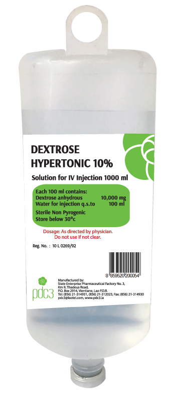 | ຊື່ການຄ້າ/Product Nam: DEXTROSE HYPETONIC 10% Each 100ml contains: Water for injection q.s to 100ml Dextrose anhydrous 10,000mg ຂະໜາດ Size: 500ml/ 1000ml ການບັນຈຸ / Packaging: 20 set /carton / 10 set/carton ຄຸນປະໂຫຍດ Indication - ໃຊ້ທົດແທນພະລັງງານ ແລະ ເກືອແຮ່ກ່ອນ ແລະ ຫຼັງການຜ່າຕັດ - ໃຊ້ສຳລັບຄົນເຈັບທີ່ຂາດນ້ຳ ແລະ ທາດນ້ຳຕານໃນຮ່າງກາຍ - Used for energy and mineral salts replacement before and after surgery - Used for patients who are dehydration and hypoglycemia | ວິທີການນໍາໃຊ້ / Dosage - ໃຊ້ສັກສົ່ງເຂົ້າເສັ້ນເລືອດດຳ ຕາມຄຳແນະນຳຂອງທ່ານໝໍເທົ່ານັ້ນ. |