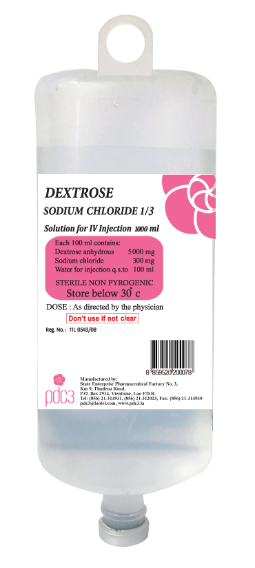 ຫຼັງການຜ່າຕັດ - ໃຊ້ສຳລັບຄົນເຈັບທີ່ຂາດນ້ຳ ແລະ ທາດນ້ຳຕານໃນຮ່າງກາຍ - Used for energy and mineral salts replacement before and after surgery - Used for patients who are dehydration and hypoglycemia | ວິທີການນໍາໃຊ້ / Dosage - ໃຊ້ສັກສົ່ງເຂົ້າເສັ້ນເລືອດດຳ ຕາມຄຳແນະນຳຂອງທ່ານໝໍເທົ່ານັ້ນ. |