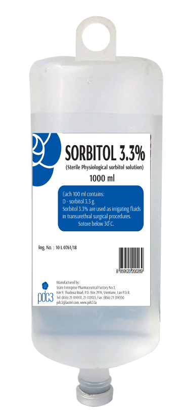 ຊື່ການຄ້າ/Product Nam: SORBITOL 3.3% ສ່ວນປະກອບ/ Composition Each 100ml contains: D-sorbitol 3.3g ຂະໜາດ Size: 500ml/ 1000ml ການບັນຈຸ / Packaging: 20set/carton 10 set/cartonຄຸນປະໂຫຍດ/ Indication -ໃຊ້ເປັນນໍ້າຢາລ້າງຂອງເຫຼວໃນລະຫວ່າງການຜ່າຕັດອະໄວຍະວະຂອງຮ່າງກາຍ - Used as irrigating fluids in transurethral surgical procedures. ຊື່ການຄ້າ/Product Nam: VECOSOL ສ່ວນປະກອບ/ Composition Each 100ml contains: Dextrose anhydrous 10,000mg Sodium chloride 900mg Thiamine hydrochloride 1mg Cyanocobalamin 0,3mg Riboflavin 1mg Niacinamide 25mg Pyridoxine hydrochloride 0,5mg ຂະໜາດ Size: 500ml/ 1000ml ການບັນຈຸ / Packaging:12 FL/carton 12 FL/carton ຄຸນປະໂຫຍດ/ Indication